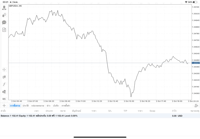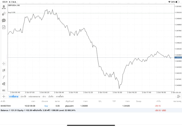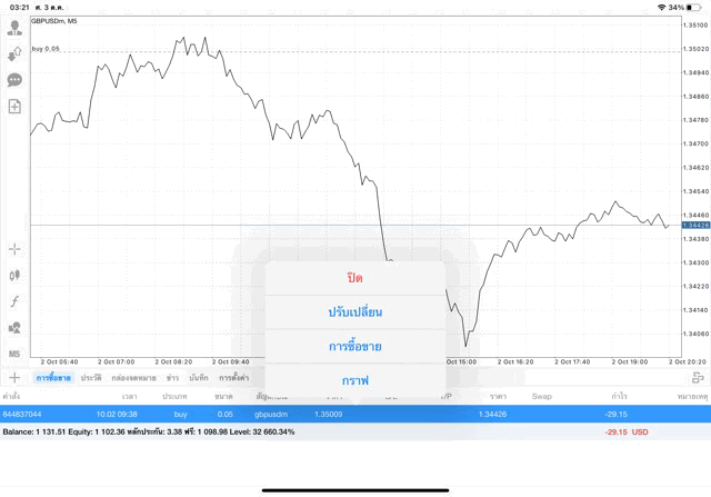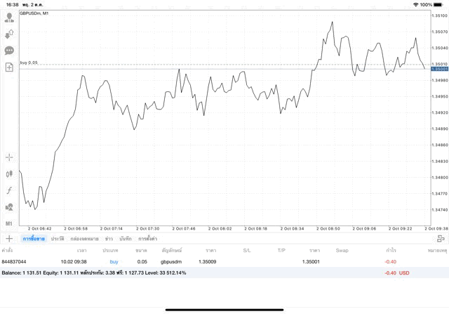 การเทรด Forex GBPUSD 0.05 lot แอพ mt4