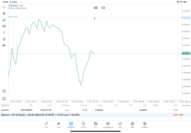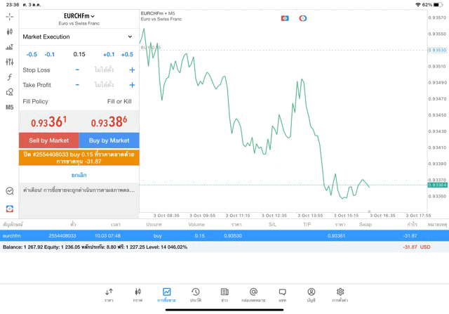 การเทรด Forex EURCHF 0.15 lot แอพ MT5