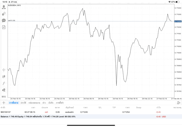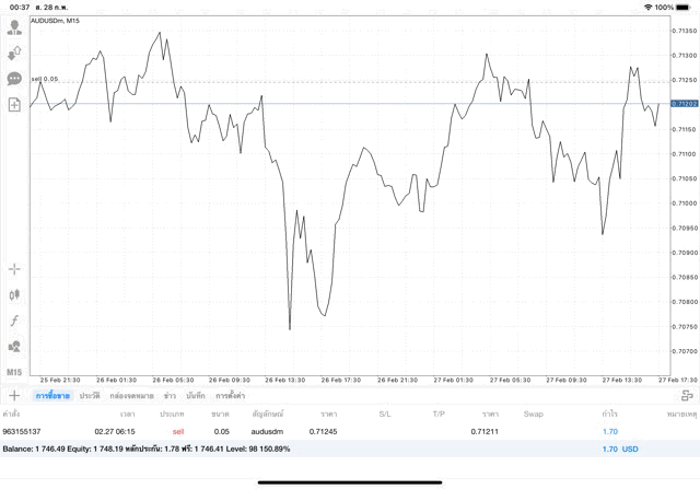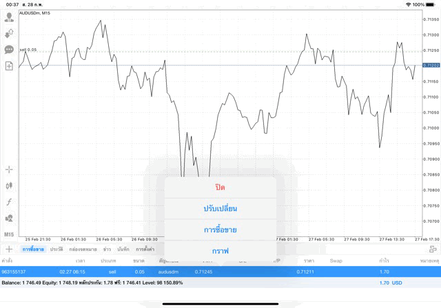 การเทรด Forex AUDUSD 0.05 lot แอพ mt4