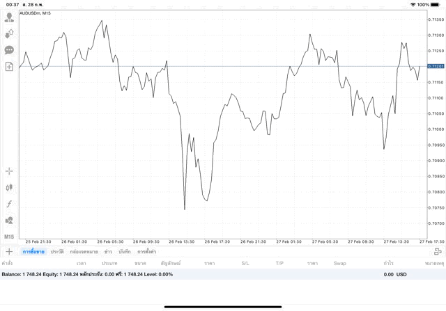 ติดลบก่อนนะ เริ่มแล้วการเทรด forex AUDUSD เมื่อเวลาผ่านไปราคาเปลี่ยนแปลงจะเกิดผลกำไรหรือการขาดทุน