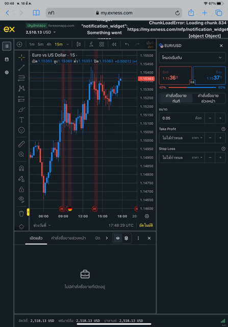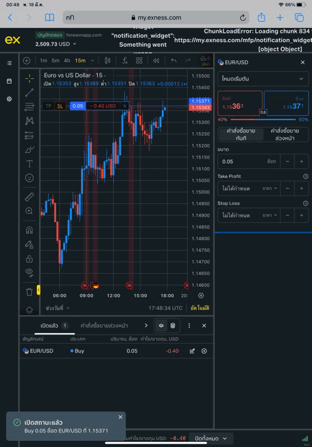 การเทรด EURUSD เริ่มแล้ว ติดลบก่อน สถานะการซื้อขายจะปรากฎบริเวณช่องด้านล่าง นักลงทุนสามารถเปิดสถานะการซื้อขายได้หลายหุ้น เช่น Forex,ทองคำ,หุ้น,เงินดิจิตอล,น้ำมัน,โลหะ (ภาพบน)