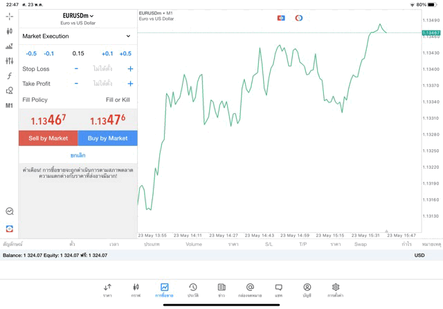 เทรด Forex EURUSD 0.04 lot แอพ mt5 exness