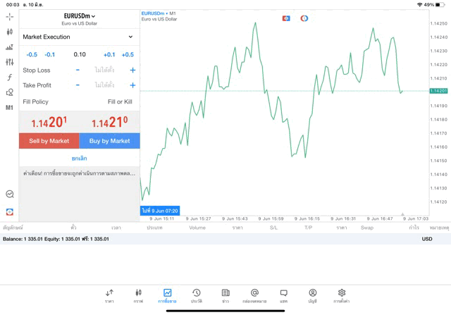 เทรด Forex EURUSD 0.03 lot แอพ mt5 exness